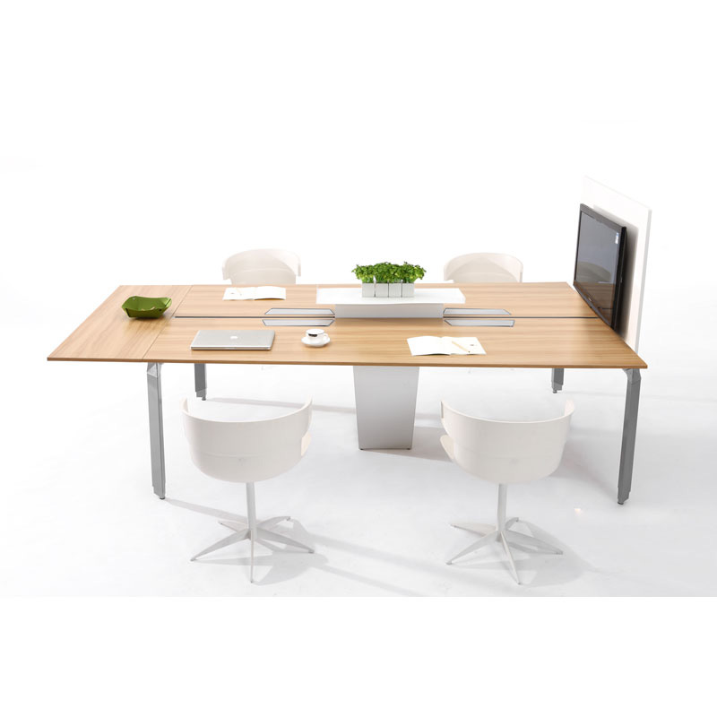 強調辦公室空間靈活組合設計。水平漂浮的線條延伸出的流暢回轉線面空間,把現代平衡美學升華極致。